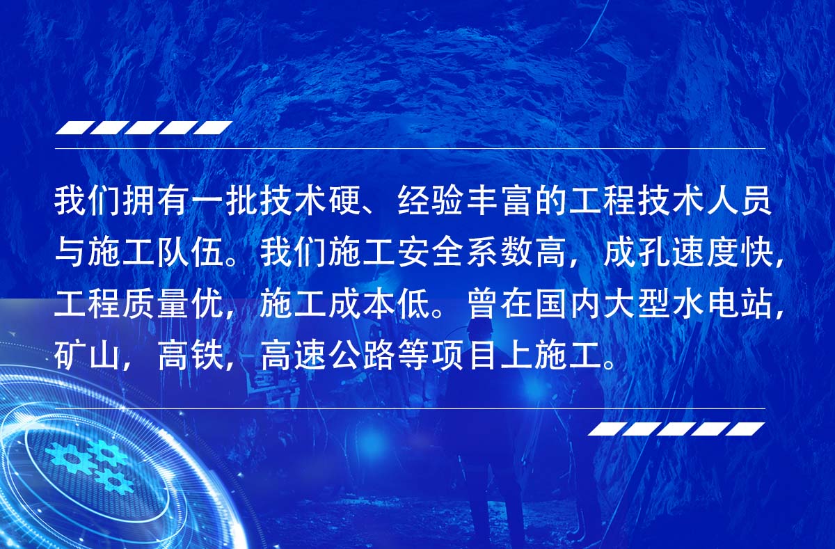 淮北市勤拓礦山工程有限公司是一家從事多年反井鉆機(jī)施工的服務(wù)生產(chǎn)型公司,公司目前有十幾臺鉆機(jī)設(shè)備,ZFY120/30/150型反井(天井)鉆機(jī)5臺,ZFY1.8/40/250型反井(天井)鉆機(jī)4臺,ZFY2.5/70/200型反井(天井)鉆機(jī)2臺,ZFY3.0/120/400型反井鉆機(jī)1臺,ZFY3.5/120/400型反井(天井)鉆機(jī)1臺,可承接深度0-300米,成孔直,0.9~4米.1.2~3米的各種豎井、井下煤倉、溜煤眼、通風(fēng)井、調(diào)壓井、電纜井、泄水井等。我們擁有一批技術(shù)硬、經(jīng)驗豐富的工程技術(shù)人員與施工隊伍。我們施工安全系數(shù)高,成孔速度快,工程質(zhì)量優(yōu),施工成本低。曾在國內(nèi)大型水電站,礦山,高鐵,高速公路等項目上施工。